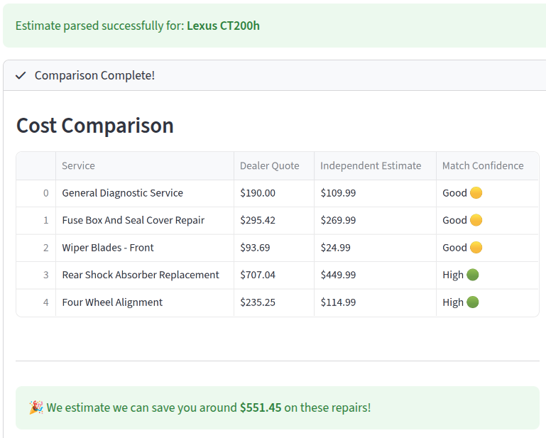 Our proprietary AI reads the document and instantly cross-references the repairs with your shop's database.